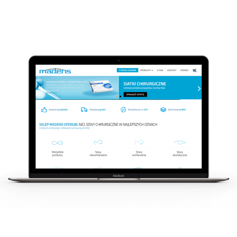 Madens to rozpoznawalna marka istniejąca na rynku od wielu lat, która zgromadziła rzesze klientów w segmencie B2B działając do niedawna jedynie w kanale offline. Podejmując decyzję o wejściu ze sprzedażą swoich produktów w kanale online właściciele marki zdecydowali o stworzeniu nowoczesnego i funkcjonalnego sklepu internetowego, który w pełni spełni potrzeby docelowych klientów marki oraz stanie się jej wizytówką. Sklep internetowy został zaprojektowany i wdrożony przez zewnętrzną agencję. Do naszego software house trafił w opłakanym stanie, a naszym zadaniem było doprowadzenie sklepu internetowego do perfekcji godnej marki Madens.