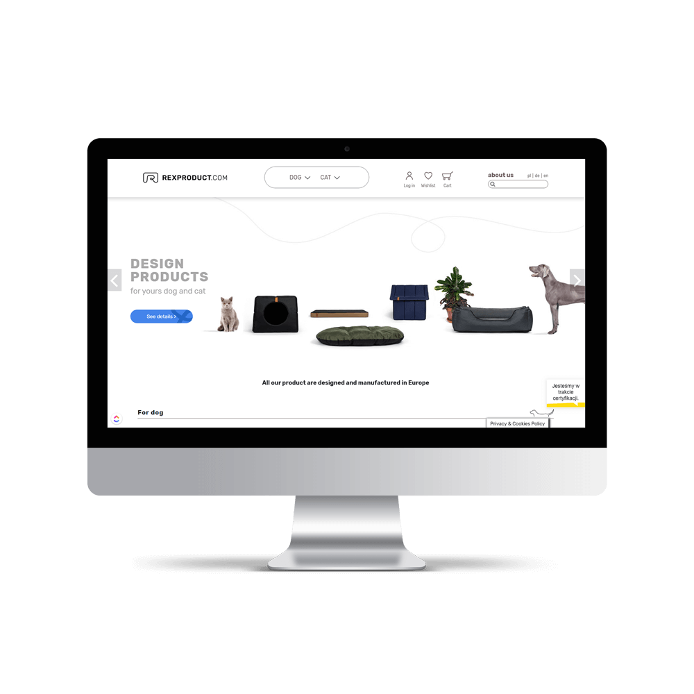 Marka Rexproduct powstała z myślą o naszych pupilach, tak aby zapewnić im komfort oraz szczęście. Rexproduct to nowoczesne, komfortowe i stylowe produkty dla kotów oraz psów zaprojektowane z myślą o nich. Właściciele marki zdecydowali się prowadzić sprzedaż produktów w 100% poprzez kanał ecommerce, stąd potrzeba stworzenia, nowoczesnego, efektywnego i użytecznego sklepu internetowego.